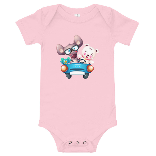 Dress your baby to the nines with this 100% cotton one piece. It has three snap leg closure for easy changing, a comfortable envelope neckline, and a beautiful print that's bound to get the baby all happy and giggling.